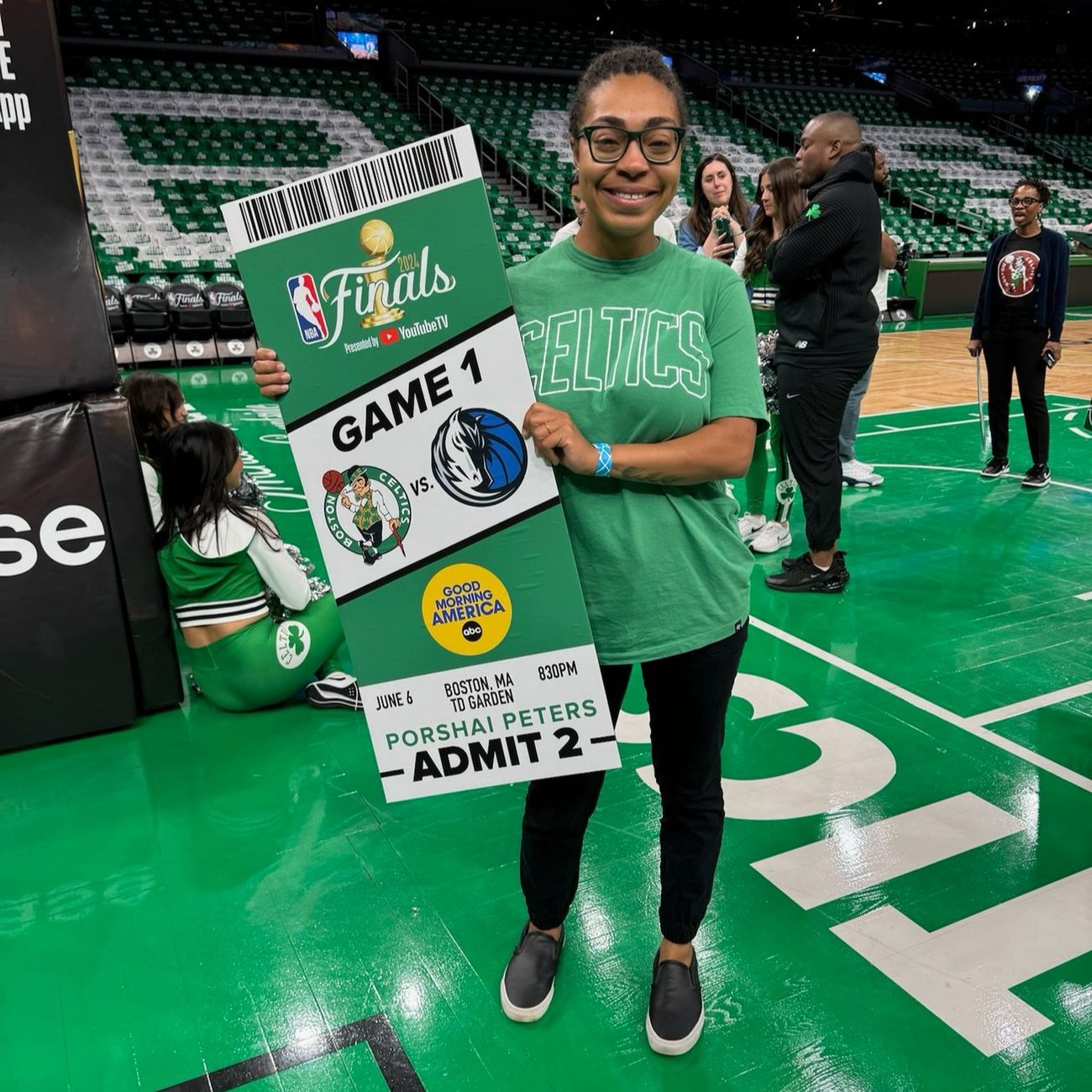 Pandan toulede gwosès li yo, Porshai Peters te resevwa swen nan Inite Mobil Curbside Care nou an, Boston Celtics Shamrock Foundation sipòte. Curbside Care pote swen enpòtan epi ki konplè — tankou sipò pou laktasyon ak tès depistaj pou depresyon apre akouchman— dirèkteman nan papòt manman ak tibebe BMC ki fèk fèt yo. Aktyèlman, Porshai pran defans nouvo manman yo nan kominote li a antanke yon doula posnatal epi konseye sètifye laktasyon. Pou montre l rekonesans pou travay defans li, Good Morning America ak Boston Celtics te ba l yon sipriz lè yo ba l tikè pou li al nan 1ye match final NBA a. Felisitasyon pou Boston Celtics dèske yo te genyen final NBA 2024 la! |
